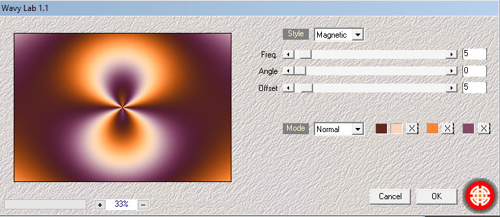 Farbe 2 Gehe nun zur Datei Datei LA_SIG 162. Effekte - Plugins - Medhi - Wavy lab 1.1 (Farben von links nach rechts: Farbe 2, Farbe 1, Farbe 3 Farbe 4)
