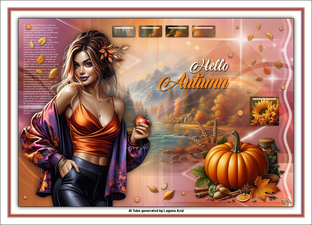 Stelle deine HGF nun auf Farbe 1 Aktiviere dein Textwerkzeug und schreibe mit der Schriftart Candle Mustard (du kannst auch eine andere verwenden) und der Größe 16, das Wort Hello oder Hallo oder was immer du möchtest, auf dein Bild. Danach, In Rasterebene umwandeln. HGF stelle auf Farbe 3, Größe stelle nun auf 22, schreibe das Wort Autumn, Herbst oder was immer du möchtest auf dein Bild, In Rasterebene umwandeln. Verschiebe den Text ca. so auf dein Bild