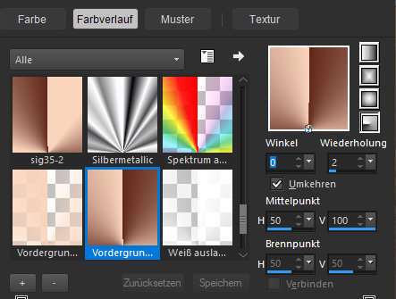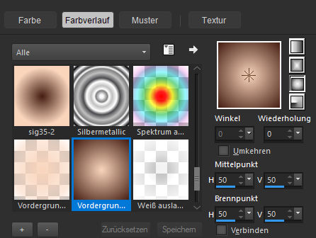 Stelle deinen HGF nun etwas dunkler und den FV wie folgt ein