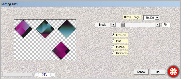 Auswahl - Auswahl laden/speichern - Auswahl aus Alpha-Kanal laden, Auswahl #1 Effekte - Plugins - Mehdi - Sorting Tiles