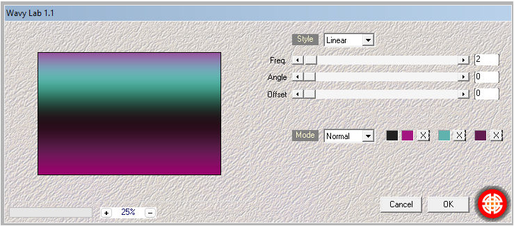 Farbe 3. Effekte - Plugins - Mehdi - Wavy Lab 1.1 (Farben von links nach rechts: Farbe 3, Farbe 2, Farbe 4, die letzte Farbe bleibt wie sie ist)