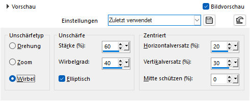 Untere RE aktivieren. Einstellen - Unschärfe - Strahlenförmige Unschärfe