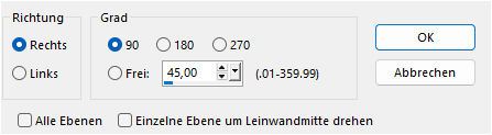Auswahl aufheben, danach DUPLIZIEREN. Bild - Spiegeln - Horizontal spiegeln (Strg+B), danach Vertikal spiegeln (Strg+T). Deckfähigkeit stelle auf 60. Ebenen - Zusammenfassen - Sichtbar zusammenfassen. DUPLIZIEREN. Oberste RE schalte einstweilen unsichtbar. |