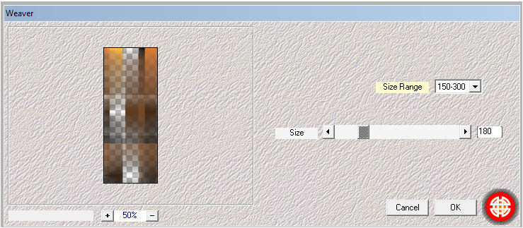 Ebenen - Zusammenführen - Gruppe zusammenfassen. Aktivere dir nun die Ebene BG. Kopiere sie danach gehe wie zu deiner oberste RE und füge eine neue hinzu. Auswahl - Auswahl laden/speichern - Auswahl aus Alpha-Kanal laden, Auswahl #1 Bearbeiten - In eine Auswahl einfügen Auswahl beibehalten. Effekte - Plugins - Mehdi - Weaver