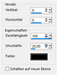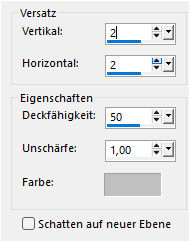 Ebenen - Zusammenführen - Gruppe zusammenfassen. Effekte - 3D Effekte - Schlagschatten, mit der Farbe 1